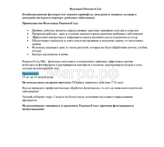 РИДОМИЛ ГОЛД МЦ, ВДГ не смывается дождем после полного высыхания обработанной поверхности.